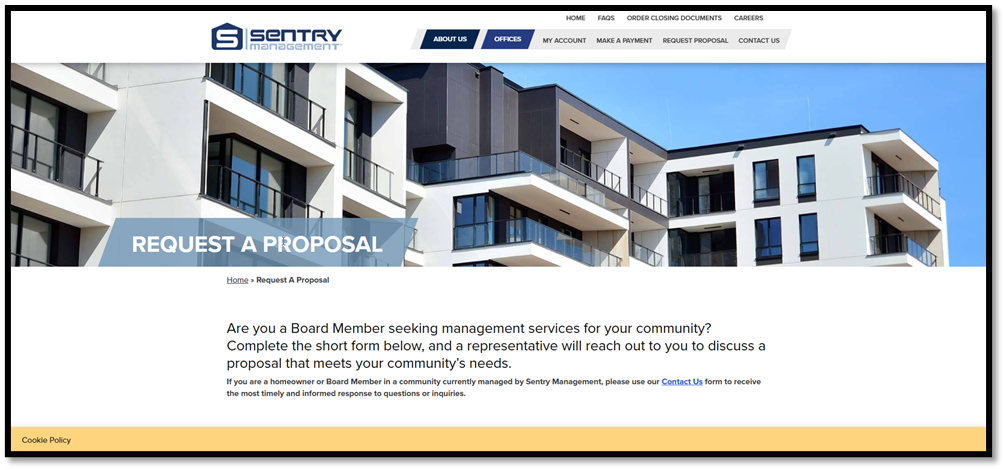 If you are a homeowner or Board Member in a community currently managed by Sentry Management, please use our Contact Us form to receive the most timely and informed response to questions or inquiries
